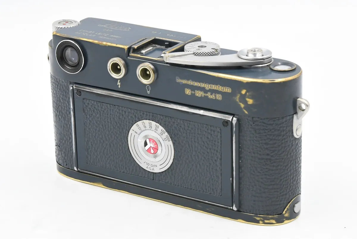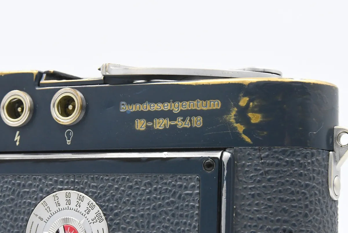 This camera has been repainted, shows slight signs of wear, and is engraved with ‘Bundeseigentum / 12-121-5418’ on the back.